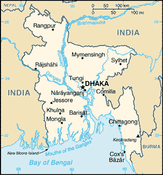 バングラデシュ(Bangladesh) .bd首都 ダッカ (156 万) (Dhaka) 国際電話番号 +880 南アジアの国; 公式名 バングラデシュ人民共和国。国土面積 144,000 km2。人口 147,365,352人(2006)。1971 年独立, 旧 東パキスタン East Pakistan。 国名のバングラデシュは Bengali・ベンガル人の国ということです。この説明を見たサイトはリンク切れになっています。インドにはベンガル州というのがあり、人種的には同じらしいです。ではそのベンガルというのは何か? 意味には行き着かなかったのですが、カナダの英語協会みたいなものの機関誌らしいものの中で、 バンガロー: Banglowの語源が Bengali-styleの houseだということがわかりました。Wikipediaによると、はっきりはしないけど、この地域に BC 1000年頃に住んでいたドラビダ語の民族に Bangというのがあったということです。もう一つ、南太平洋に"Bonga"という太陽神を意味することばがありということです。また、マハーバラタとかによると、Vangaというのは バンガ王国を築いた Vali王の息子の名前だということです。イスラムの方では ノアの息子の Hindの息子が Bongだそうです。ノアはキリスト教とイスラム教と共通です。資料としては805年 Nesari Platesというのに、Vangalaの王の名前として Dharmapalaが挙げられているそうです。このころはパラ王国 Palaというのがあって、Dharmapalaは世界遺産として残るPaharpur遺跡の Viharaという仏教寺院だか修道院を築いたようです。この地にイスラム教が入ってきたのは13世紀以降のようです。 大昔を言うと、BC 3000年くらいからベンガル地域には文化の痕跡があり、最初はアルパイン文化 Alpineが栄え、その中の民族に Vangaも居たようです。その後、アーリア人の侵入が始まりますが、BC 4世紀まではくい止めていたようです。それどころか BC 544年にはスリランカを征服し、シンハラという名前を与え、マドラスとかインドネシア群島にも植民していたようです。 アレキサンダー大王の東進も、このあたりで抵抗が強く、ついに引き返したということです。 その後のグプタ帝国 Guptaとかゴーダ王国は必ずしもバングラデシュの地というわけではなく、インドとも言える地域ですが、ベンガル人の国だったようです。次ぎに仏教の王国としてパラ Palaが出現し、8世紀から12世紀にかけて安定した繁栄をしていたようです。このパラ王国がチベットやブータン、ミャンマーに仏教を広めたようです。8世紀後半にマレー半島、ジャワ島などに栄えたサイレンドラ帝国 Sailendraの王朝もベンガル人だったようです。その後に短期間ですがヒンズー教の Sena王朝ができます。 12世紀になるとイスラム教徒の侵入がはじまり、席巻します。これがトルコ系だったのかその後、トルコ系の王朝ができます。Wikipediaの記述はゴチャゴチャと人名、インドにまたがる地名が出てきて相互関係がわかりにくいので、このあと飛ばしてムガール帝国の時代、15世紀後半になってヨーロッパ人がオランダ人、フランス人、イギリスの東インド会社などが続々とやってきます。17世紀にムガール帝国がポルトガル軍を壊滅させたり、イギリス軍を追い払ったりしますが、欲に目がくらんだか?カルカッタなどをイギリスに売り渡したりしてイギリスに地歩を築かせます。イギリスはついにはほかのヨーロッパ人を駆逐して、1857年には東インド会社という軍隊を持った国家みたいな会社がバングラデシュ、パキスタンも含めたインド全域を支配するという妙なことになります。これが百年も続くわけですが、いろいろと問題が起こるようになり1858年には総督を置いての直接支配になります。 19世紀末から20世紀初めにかけて独立運動が芽生えます。これが多分に宗教的要素を持っていたことを利用しようとイギリスは宗教による分割統治を試みます。これは 7年間しか続きませんでしたが今日のパキスタン、インド、バングラデシュが形作られる伏線にはなったようです。その後も独立の動きは続き、イギリスは名誉ある撤退を求めて提督・マウントバッテン郷を送り込みます。いろいろ暴力事件が起こり、ヒンズー教徒とイスラム教徒との間で相互に非難合戦になりますが、日本でもよく知られるインド独立の英雄・チャンドラボース等がインドと二つに分かれたイスラム教の国・パキスタンに別れて独立するという案に辿り着き、1947年に実現します。パキスタンは当初はベンガルという国名だったようです。 マウントバッテン郷はドイツの王族の血をひく貴族ですが、太平洋戦争の終戦前後に連合国軍の東南アジア最高司令官でしたが、当時進行中だった東京裁判を念頭に「軍は純粋に政治的な性格の裁判にかかわるべきでない」と主張し、日本の戦争指導者を戦犯裁判にかけることに反対を表明した、ということが、2005年4月に公文書から分かったようです。これがほんとに反対意見なのかぼやけてますが。東京裁判が軍事法廷の延長線にあるのか国際法廷なのか、多分に前者だったのでしょう。 こうして成立したパキスタンで