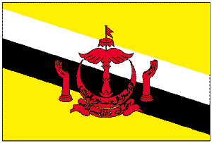 ブルネイダルエスサラーム(Brunei Darussalam) .bn首都 バンダルスリブガワン (4 万) (Bandar Seri Begawan) Borneo 島北西岸の国 公式名 ブルネイ-ダルサラーム国, 29 万。もと英国保護領, 1984 年独立。マレー人が大半, 約 20% が中国系. 言語: Malay (公用語), Chinese, English. 宗教: イスラム教. 通貨: dollar。 かつて、ブルネイにはスルタンとかサルタンとか呼ばれるSultanというイスラムの君主がいて、15世紀から17世紀にかけてはボルネオ島の北西部から南フィリピンまでを領土としていました。その後、王位継承をめぐる争いや、ヨーロッパの進出と略奪によって衰亡しました。1888年にはイギリスの保護領になり、独立したのは1984年です。ブルネイの王朝は 6世紀にわたって続いています。石油と天然ガスの富によって、一人あたりの国民所得は最高です。 国旗の基本はこの長く続いている王家の紋章です。斜めに走る白と黒の帯は、白が、第一首相、黒が第二首相、昔の日本で言えば、右大臣と左大臣を表していて、右大臣の方が偉いから幅も広くなっているらしいです。もう一つブルネイ-ダルサラーム政府の詳しい説明を見つけました。 - 紋章の一番上はベンデラ Benderaという王家の旗です。