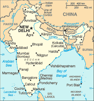 インドの数字の関係で見つけたのが、これもビックリ。インド料理ラニ 様のいちジャパニの見たインドってこんな感じというページで、ほかにもいろいろと興味深い記事がありますが、インドの数字は 1から 100まで全部、個別の呼び方があって、要するに百進法らしいのです。これは驚きました。このリンクを貼るについてインド料理ラニの方に了解を得るついでにインド人がアラビア数字をどう呼んでいるか尋ねたのですが、インド人のスタッフはアラブでインド数字と呼んでいることも知らなかったし、また、アラビア数字に対する特定の呼称はないということでした。数字は単に数字ということらしいです。 インドの文化に関しては、佐納康治というの大学の先生の旅行記があるので紹介しておきます。コンピュータとか情報の教授のようですが、世界中、旅をされています。 →国立民族博物館・研究公演・マンガラ・イサイ─南インドの儀礼音楽 →インド・ケーララ州のキリスト教 →インド大使館 →アジアの地図 ↓インドの地図