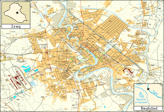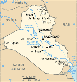 イラク(Iraq) .iq首都 バグダッド (218 万)(Bagdad, Baghdad) 国際電話番号 +964 西南アジアの国。 公式名 イラク共和国。国土面積 437,072 km2。人口 26,074,906人(2005)。アラブ人が大半, ほかにクルド人, トルコ系など。 言語: Arabic (公用語), Kurdish など。 宗教: イスラム教 95% (シーア派とスンニー派の割合はほぼ 2 : 1), キリスト教など. 通貨: dinar。 国土の大半は Tigris 川, Euphrates 川の形成する沖積平野, 古代文明発祥の地です。 今でこそ知らぬ人とてないイラクですが、以前は、どこ?という人も多かったでしょう。そんな人でもバグダッドはアラビアンナイトでシンドバッドが活躍する町として知っていたのではないでしょうか? 名高い、そして物語の国のようなペルシャの首都だったのが、バグダッドです。その意味はペルシャ語のバグ(園)とダッド(神)で「神の園」で、聖書に出てくる「エデンの園」の舞台になった場所だとも言われています。バグについては「神の与えたもうた(街)」という説もありますけど。とにかく町の真ん中をティグリス川が流れていて、文明発祥の地の一つのです。 762年にアッバス朝が、それまでの首都、ダマスカスから遷都したものです。ダマスカスは今はシリアの首都ですね。ペルシャ帝国の規模の大きさが分かります。北アフリカのカルタゴもペルシャ人の国だったのは歴史でも教わりました。その後、セルジュク・トルコなどの侵攻を受けたりして、衰退していきますが、1258年にフラグ・カン率いるモンゴルに大略奪と大虐殺を蒙り、アッバス朝も絶えて決定的打撃を受けます。1401年にはこれもモンゴル系らしいチムール帝国の略奪を受け、1534年にはオスマントルコに占領されました。結局、イラクが独立したのはイギリスの支配下でイラク王国が1921年に成立したときで、完全に独立したのは1956年のことです。 06/May/03 国名の由来について触れていませんでしたが、ネットを検索すると日本語では「低地」を意味する言葉とあります。英語だと、ウルク Urukという湿地からきたのだろうとあります。まあ、湿地は低地でしょう。このウルクはシュメールのギルガメシュ王が首都としていた町のようです。湿地は肥沃な土地でもあるわけで、ペルシャ以前、紀元前にはシュメール王国があったわけです。 もともとはペルシャの中心だったイラクですが、今、ペルシャ語を使っているのはイランだけでイランの方がペルシャの正統ということにはなりますが、サダム・フセインが1980年から1988年にかけてしゃにむにイランに侵攻したのはペルシャ帝国を復活させようという野望があったのかも知れません。1991年のクウェート侵攻も同様な試みで、サダム・フセインとしてはクウェートなんて米英が、石油のために傀儡政権を作っただけ、という気があったのでしょう。 国旗の中段には、アッラーアクバル、つまり「アラーは偉大なり」の文字が書かれているんだそうです。サダム・フセイン後の新政権が出来ても、この国がイスラムを国教とすることには変わりないでしょう。 →アジアの地図 →ペルシャ湾岸の地図 ↓イラクの地図